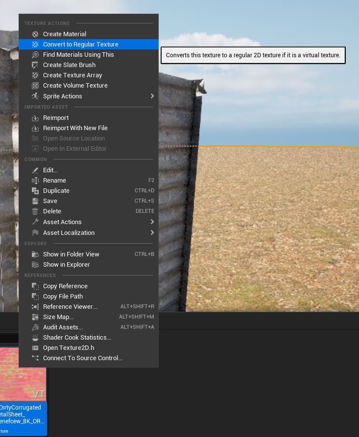 할당하려는 텍스쳐를 우클릭하여 Convert to Regular Texture를 선택하여 일반 텍스쳐로 변환해준다.