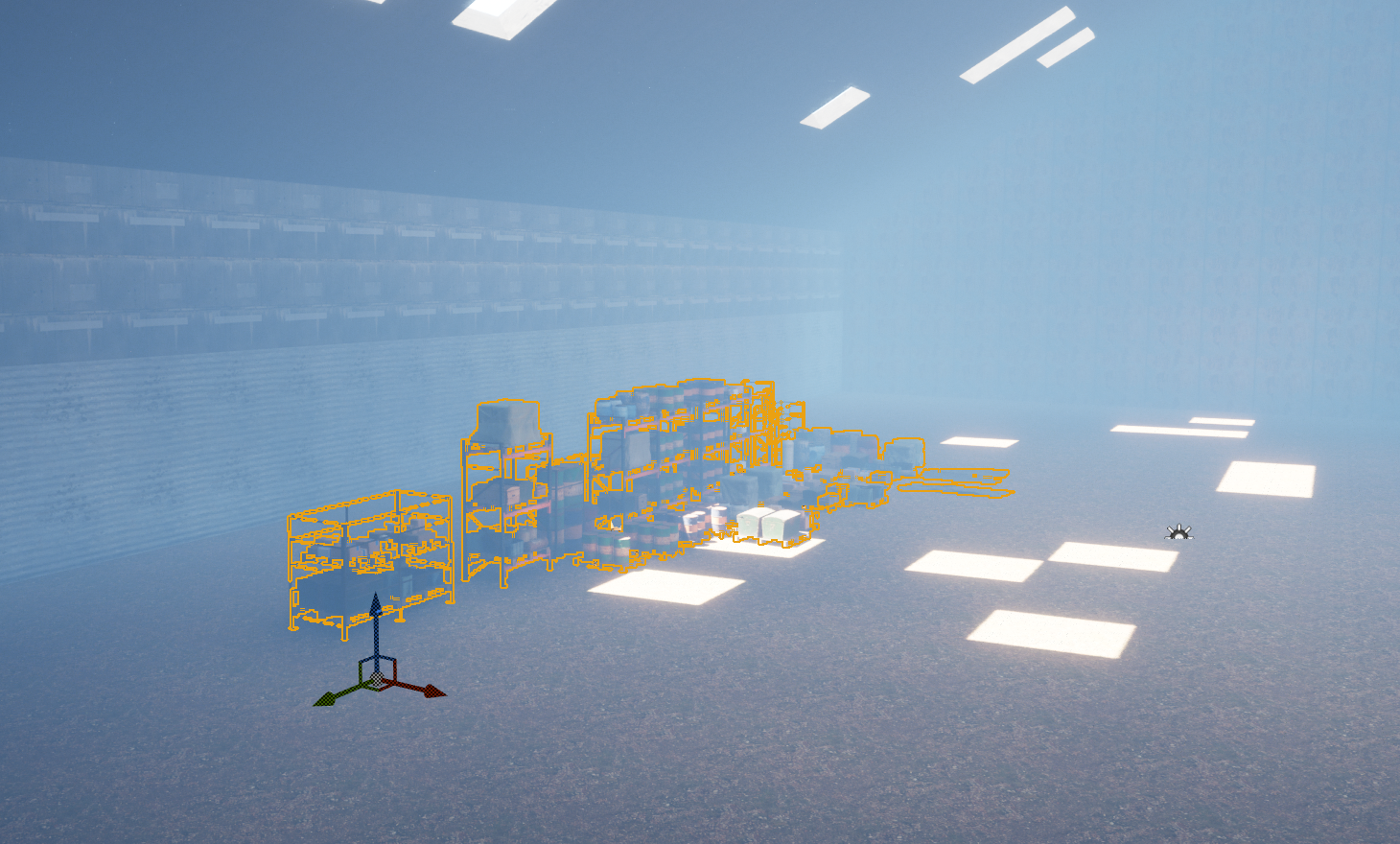 이제 공장 내부를 채워보자. 그 전에, 이전에 만들었던 에셋들과 레벨 인스턴스들을 복사하여 공장 내부로 가져오자. 이렇게 먼 거리를 이동할 때, 드래그하여 오브젝트들을 이동시키는데 맵 밖까지 이동하기위해 드래그하고, 시야를 옮기고, 드래그하는 식으로 하게되는 경우가 있을 것이다. 이 때는 Shift + 드래그를 통해 이동하면 카메라가 함께 이동하기 때문에 조금 더 편하게 이동시킬 수 있다.