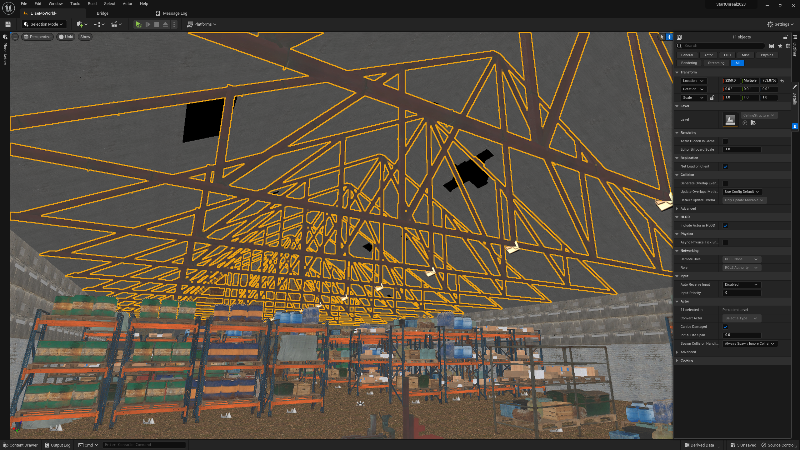 기본적인 구조를 구현했고, 이것을 레벨 인스턴스로 만들었다. 공장 천장에 지속적으로 배치해야할 구조물이기 때문이다.