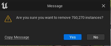 맵 전체에 깔린 에셋의 수가 나오며 정말 지울거냐고 물어본다.