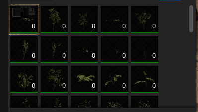 또한 위 사진과 같이 Foliage 에셋을 원하는 것만 선택하여 배치하게 할 수 있다. 키가 너무 큰 식생은 너무 자주배치되는 것이 개인적으론 별로 예쁘지 않다고 생각하영 키가 큰 식생은 빼두고 바닥에 깔리는 식생들을 우선적으로 배치한 후, 키가 큰 식생을 다시 배치할 것이다.