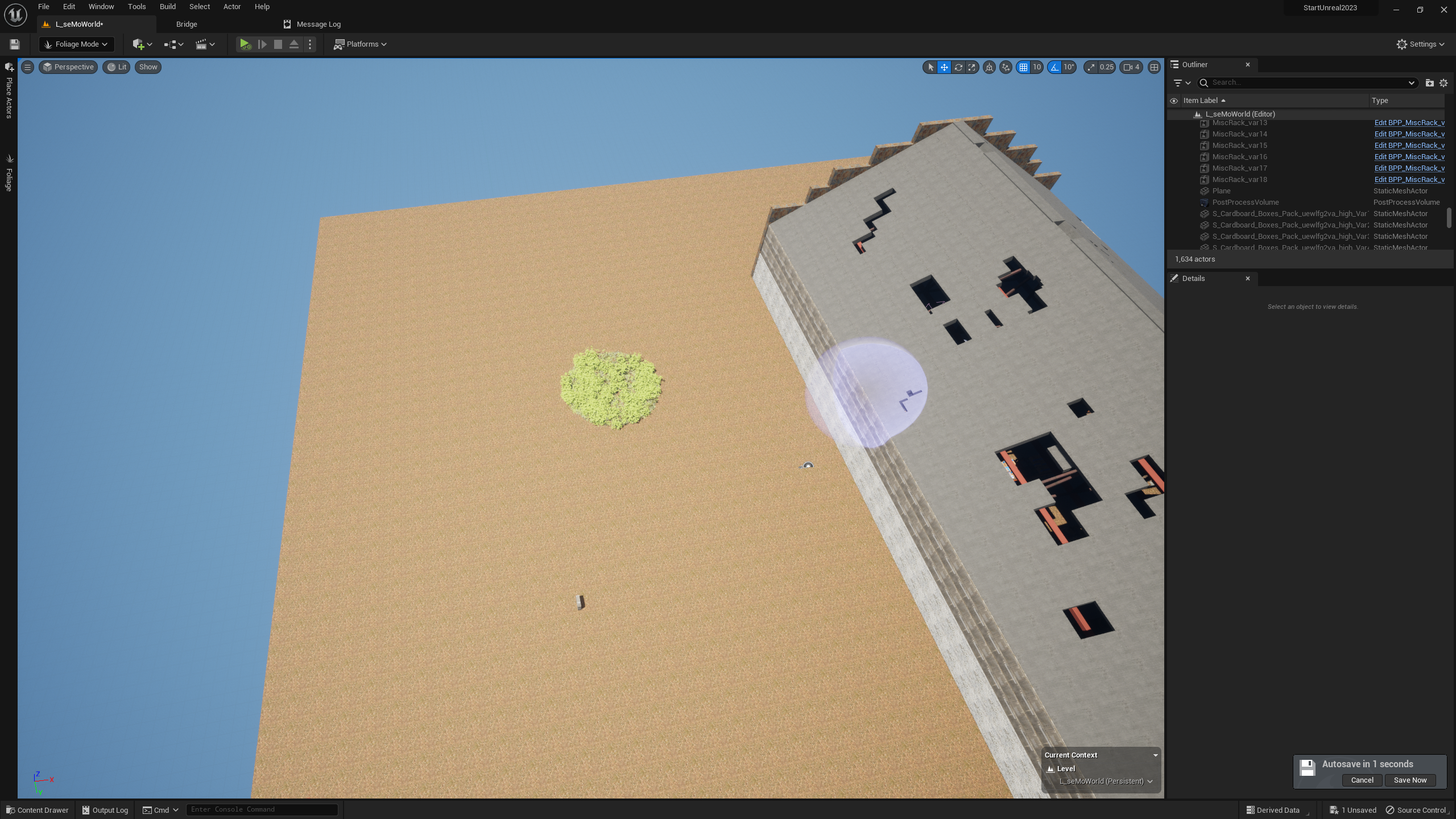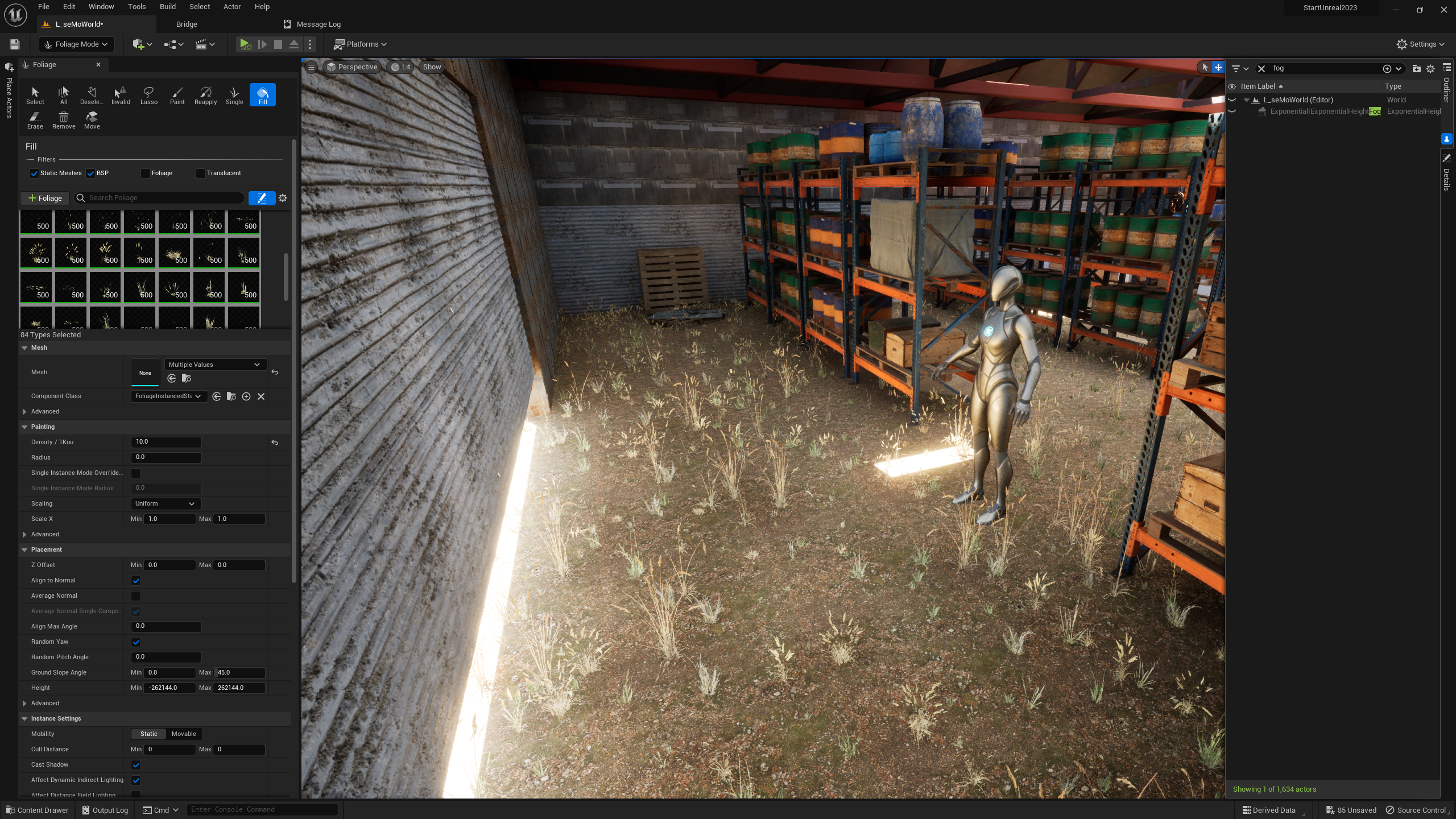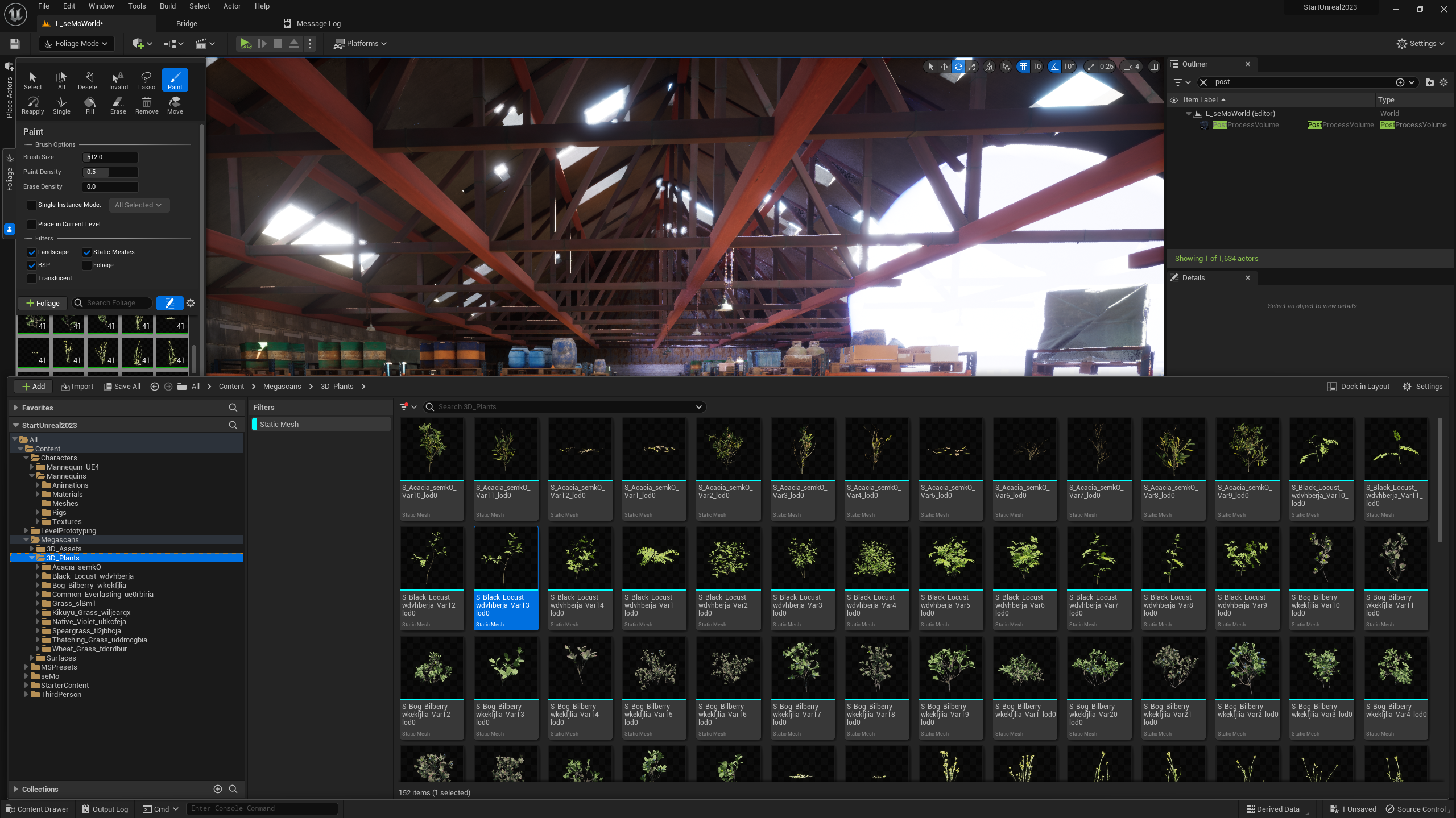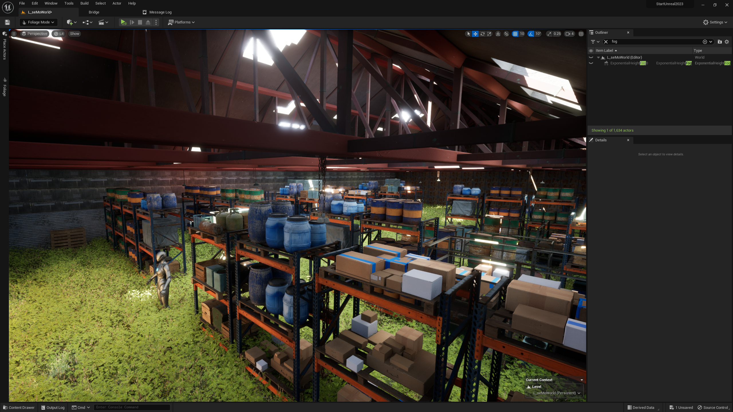 자, 이제부터는 꾸며놓은 공장 내부에 식생들을 배치하며 환경의 디테일을 한껏 끌어올려 자연스러운 환경을 연출할 것이다. 이것을 배치하기 위해 UE5.1버전의 Nanite Foliage 기능을 이용할 것이다.