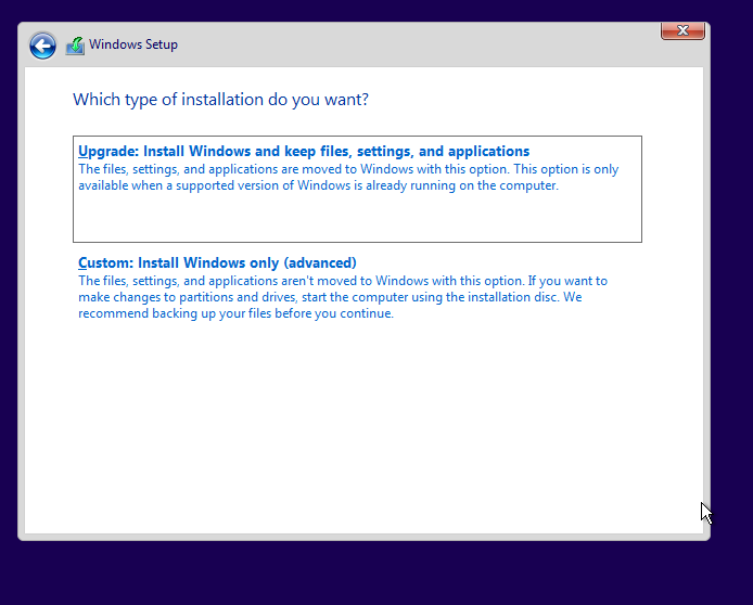 Upgrade: 기존 설정, 파일, 앱들을 유지하며 윈도우 설치